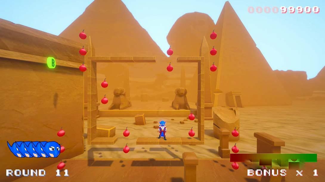 扮演一个披着斗篷的小英雄,他的职责是收集炸弹,防止东西被炸飞!在这款复古的80年代风格的街机游戏中,你将帮助无畏的英雄贾格尔抵御敌人的机器人和ufo,因为他跨越平台,空中跳跃和使用向下破折号收回燃烧弹,否则就太晚了!