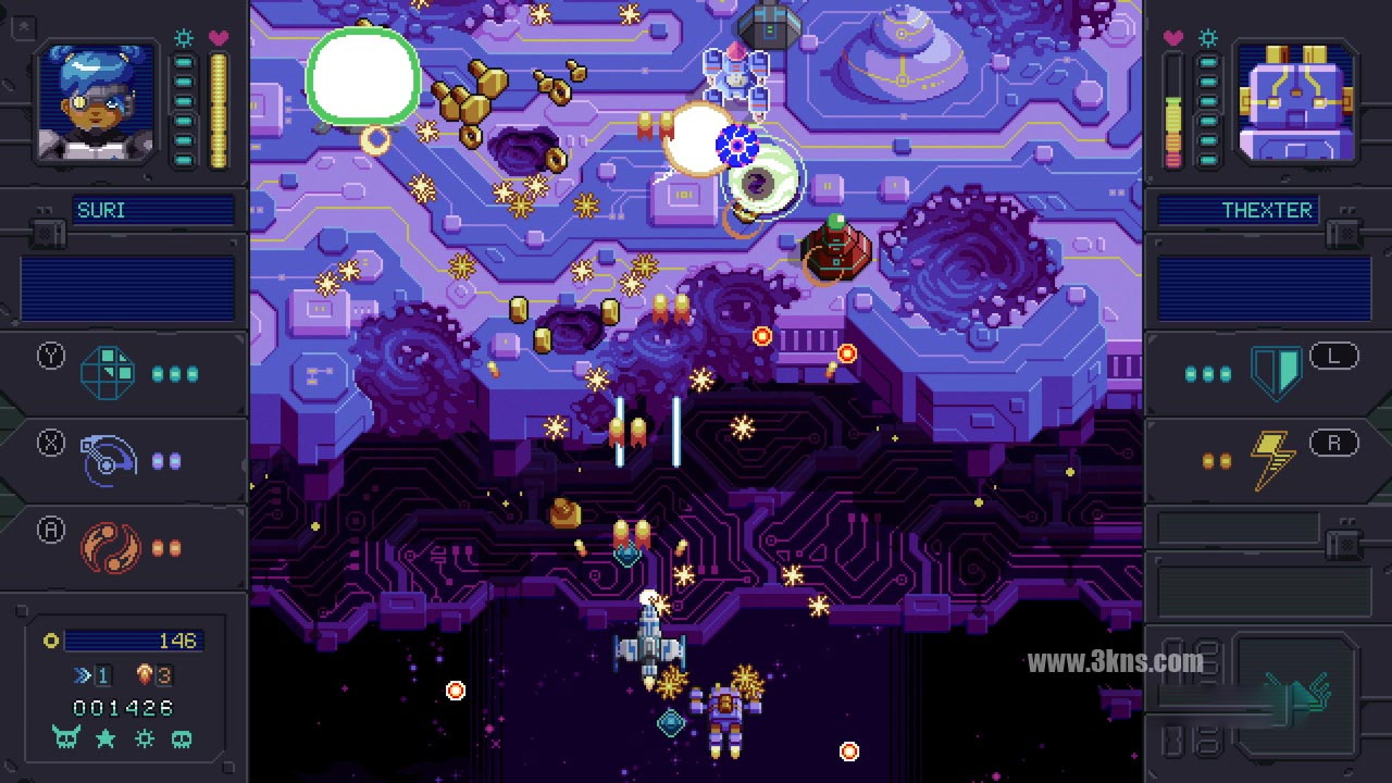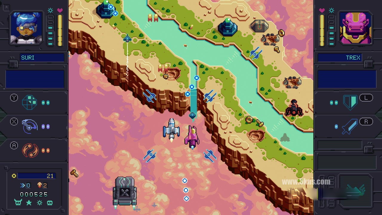 僚机-让一个僚机加入战斗,与你并肩作战。同时管理两艘飞船会让你成为更大的目标,而僚机则会提供更强大的火力和额外的特殊能力。在游戏中进步的最有效方法是与你的僚机建立和谐的关系。3个独特的僚机角色可以通过玩任务解锁。