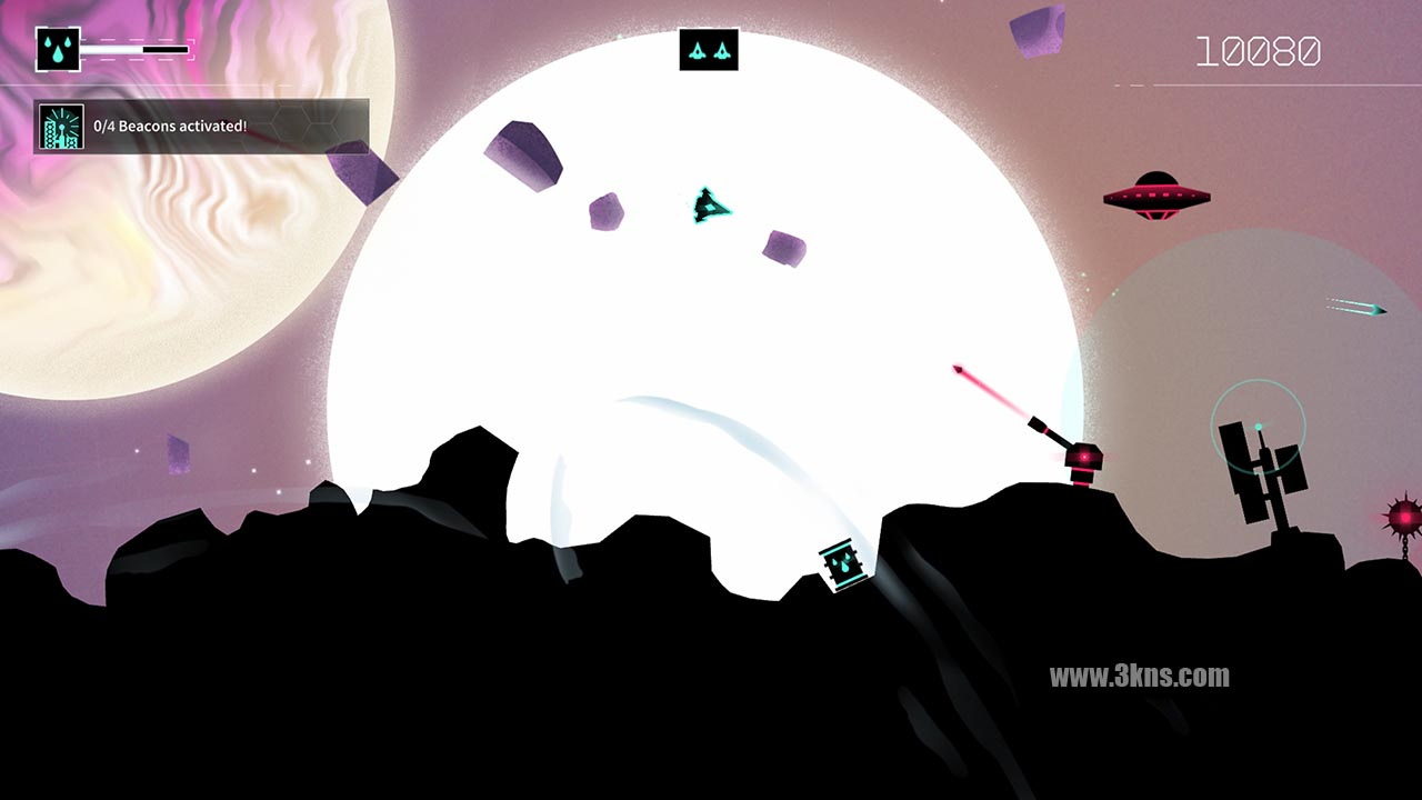《Gravitar:充能》的视觉美学将《充能》系列带向一个新的方向,以绘画风格和柔和的色调渲染广阔的环境。在行业资深作曲家Megan McDuffee的能力之手,原始的配乐与舒缓的艺术风格互补,大气的轨道,唤起一种神奇的感觉。