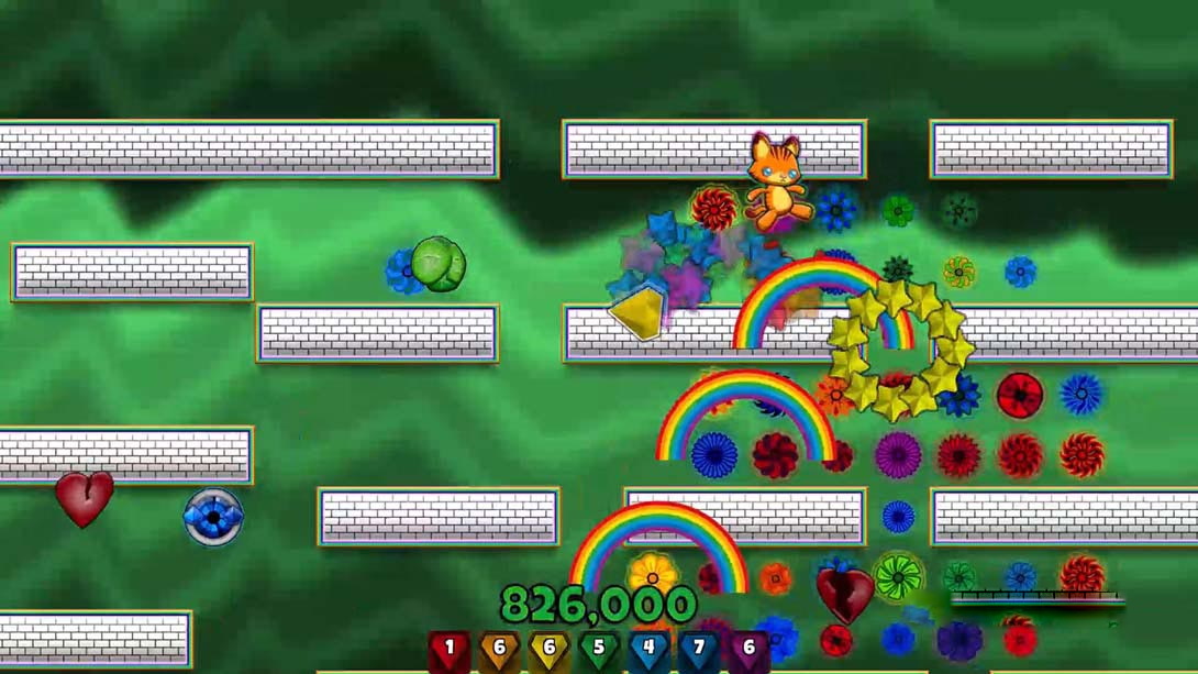 为了帮助你,当敌人死亡时,你可以收集一些道具。收集每个彩虹颜色的7颗宝石,如果你死了,神秘会自动授予你另一个级别的运行-非常方便,因为你只开始一个生命!收集能量并享受暂时冻结的时间或见证巨大彩虹的力量!