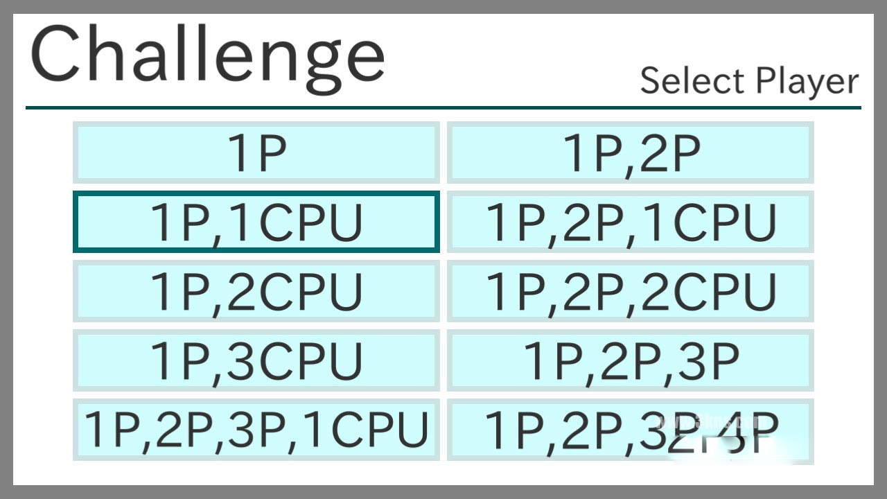 例如,您可以用1个人和2个CPU来挑战,或者3个人和1个CPU,或者4个人等等。您可以用自己喜欢的构图来挑战并享受挑战。