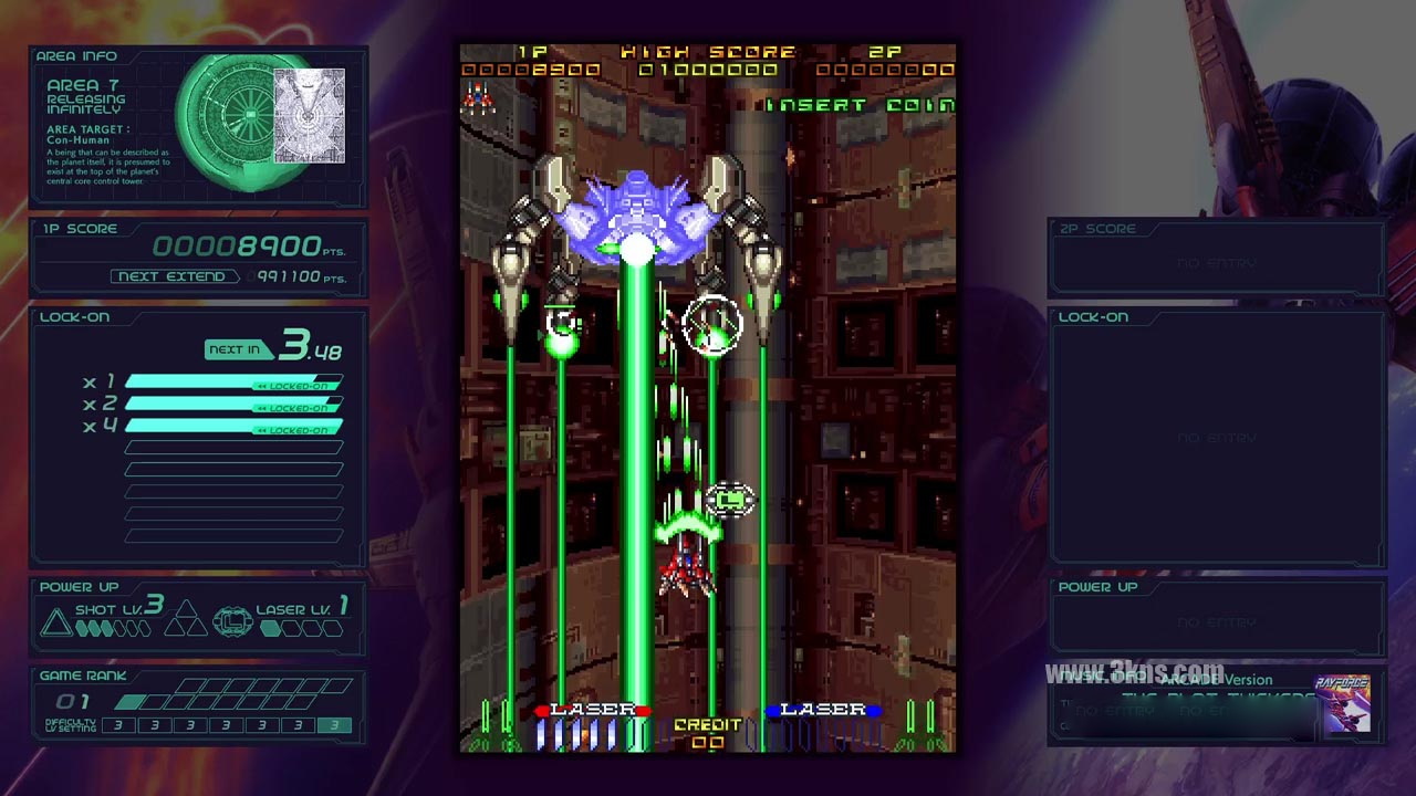 凭借其革命性的“双层攻击”系统,在RayForce中驾驶RVA-818 X-LAY,面对AI Con-Human的防御。