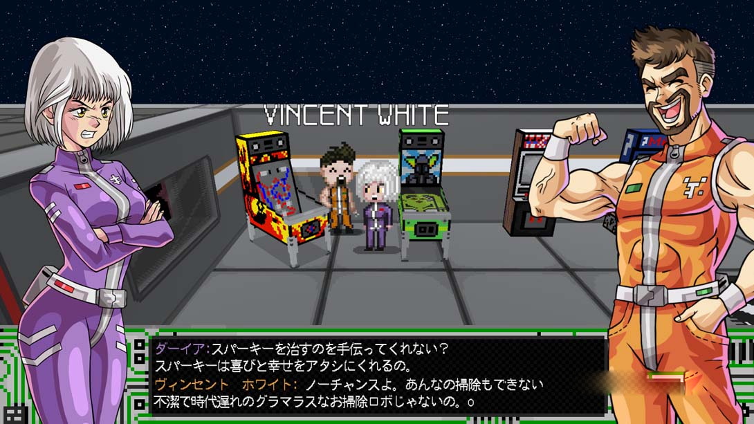 冒险中随处可见街机游戏。在充满复古气息的拱形射击游戏中击退来自宇宙的侵略者,在弹子球中展示操作fliper的绝技。所有的迷你游戏都是有目的的,通过这些来展开故事。