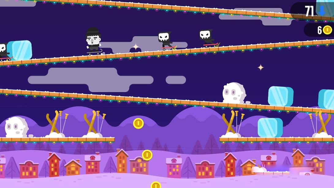 3、独特的排行榜系统,玩家可以运用自己高超的操作能力让角色展现高难度滑行动作,滑到更远,夺得高分,占据高排名。