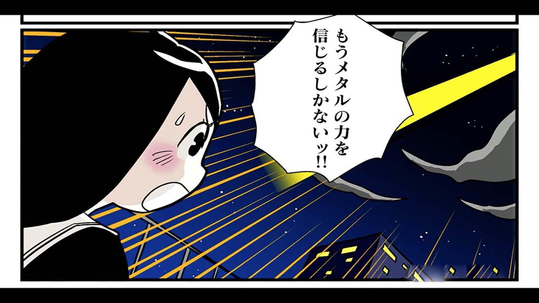 本作品描写的是突然被外星人掳走,与女高中生身体融合,精神同居的男高中生。作为少女金属乐队“k.m.g.”(吉祥寺金属少女)的一员“用金属的力量拯救地球”这样宏大的故事展开,玩家作为电视剧-和乐队成员合作,试图侵略地球。和企图的外星人战斗。