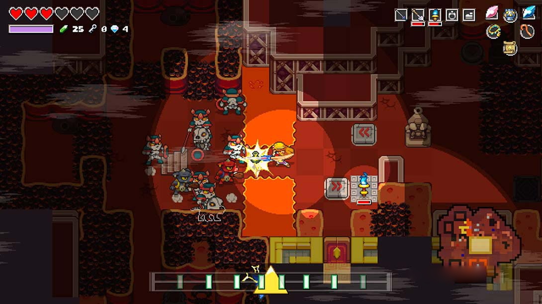 本作是加入了塞尔达传说的节奏地牢。游戏仍然还是玩家们喜欢的《节奏地牢》游玩方式,只不过这一次游戏的场景设定在塞尔达传说系列的海拉鲁大陆,而且玩家可以操作塞尔达传说系列的男女主角——勇者林克和塞尔达公主。在这款结合《节奏地牢》与《塞尔达传说》两款作品的新作中,除了林克、塞尔达公主成为可操作角色之外,图像、怪物也都摇身一变成为《塞尔达传说》风格,背景音乐亦采用改编版的《塞尔达传说》乐曲。