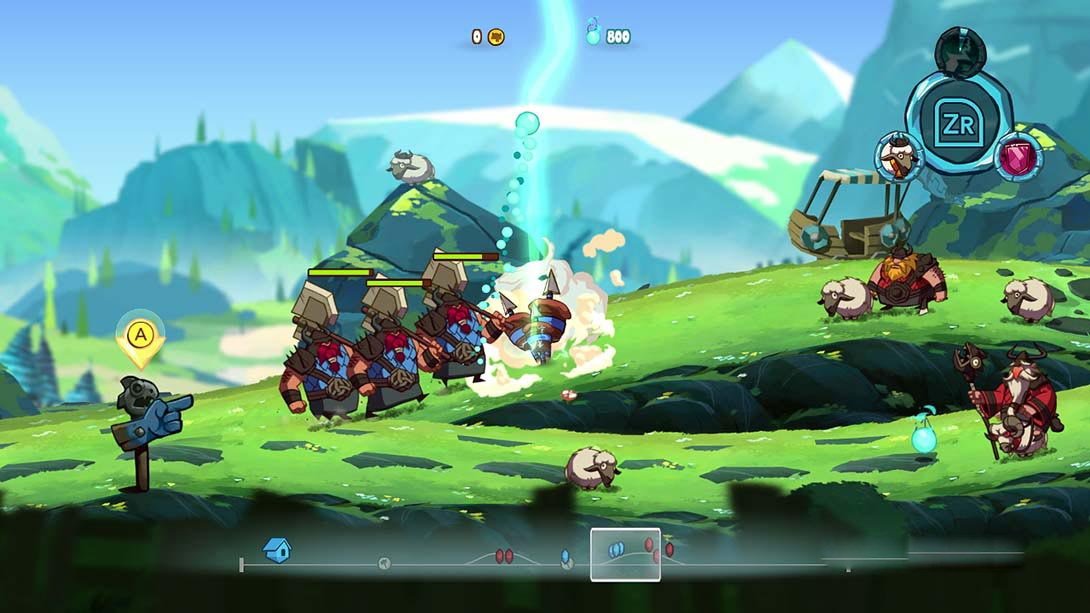 switch《剑与勇士2 肉夹末日》是一款2D横版类的即时战略游戏。在一场高度策略性斗争中通过战斗来控制地图并使敌人退回到他们的基地