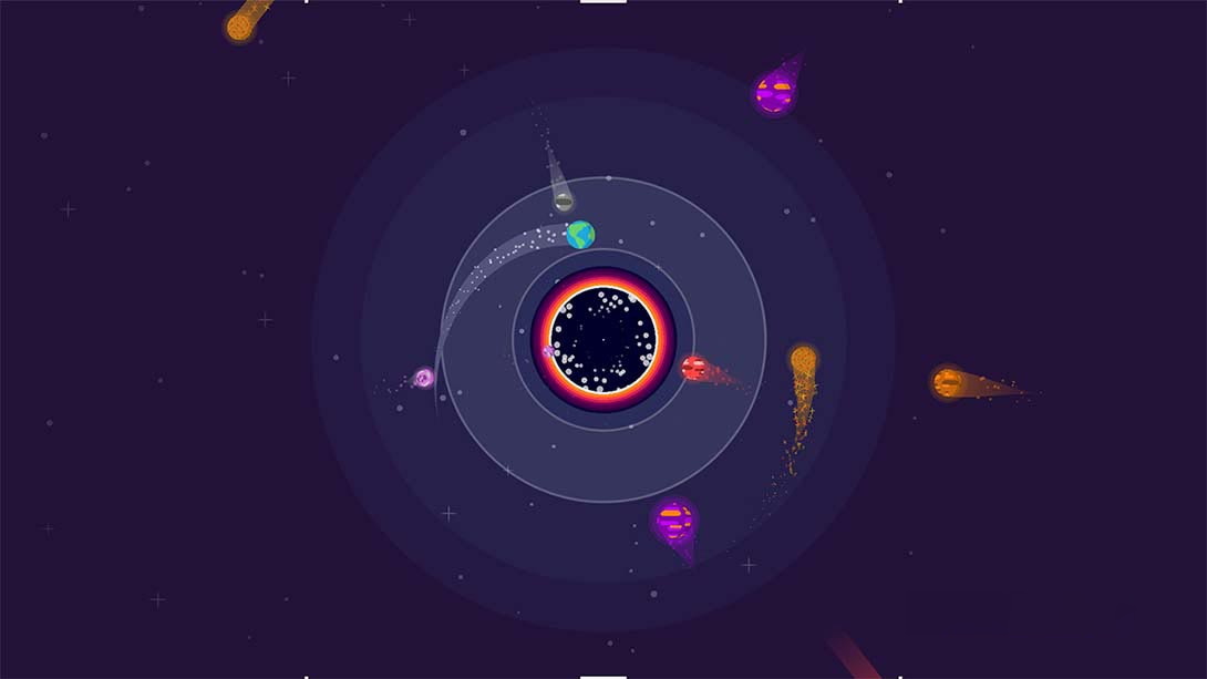 switch《轨道XL Orbt XL》是一个简单却令人上瘾的街机休闲类游戏。游戏以行星轨道为题材,为了保护母星避开其他行星的撞击,你要控制星球在轨道上移动,同时小心不要被黑洞吸进去。