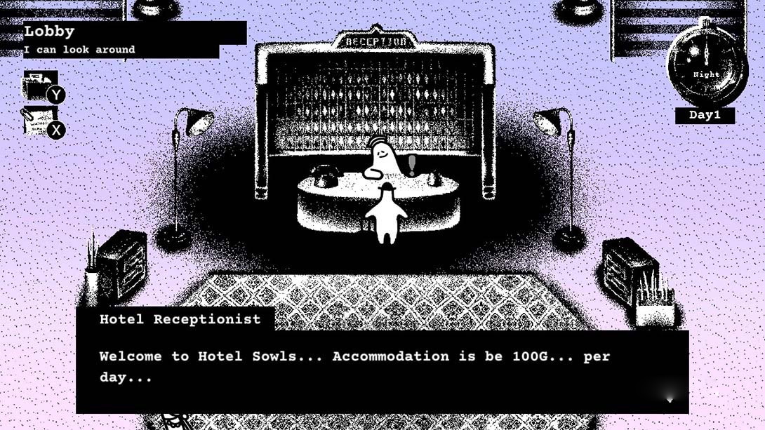 《Hotel Sowls》是一款黑白画风的点击式冒险解谜游戏。在游戏中你将扮演一名药师,经过一段艰苦的旅程,你设法得到了一块珍贵而神秘的石头,你决定在猫头鹰旅馆休息一下。但第二天早上,有人在酒店偷了石头!你能在这个陌生而又神秘的酒店里找到一块石头,找到酒店的秘密吗?