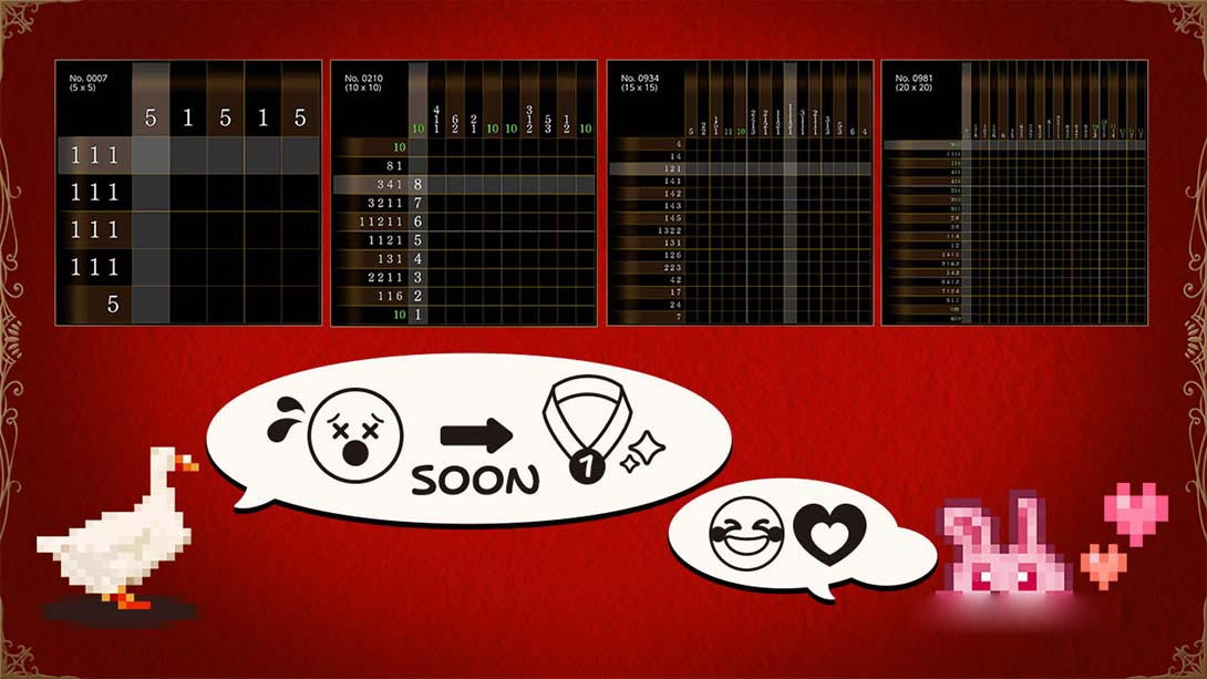 对于初学者和高级用户,每5×5至20×20有4个难度级别,共1000个问题。
