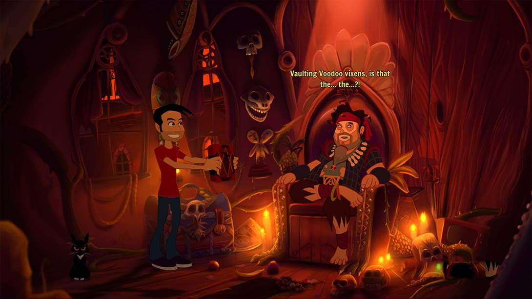 《月相魔影:克苏鲁之路 Gibbous – A Cthulhu Adventure》是一款欢快的冒险游戏,它其实并不恐怖。游戏受克苏鲁文化启发,拥有精美的手绘场景,细节极其丰富的动画过场,以及一个极具风格的故事。故事里三个主角环游世界,并在各种奇奇怪怪的天灾人祸、巫毒巫术之中踏破重重险阻。从洛夫克拉夫特国到特兰西瓦尼亚,这趟旅程的唯一目的,便是要让这只玩世不恭的混账猫闭嘴。