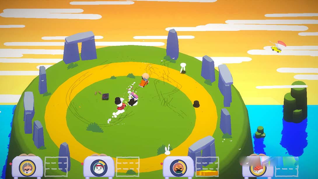 简单的操纵杆控制用于操纵您的车辆,两个按钮可以跳过您的对手或将他们砸向空中!控制很简单,但学习以智取胜并引诱你的朋友是有趣的部分。