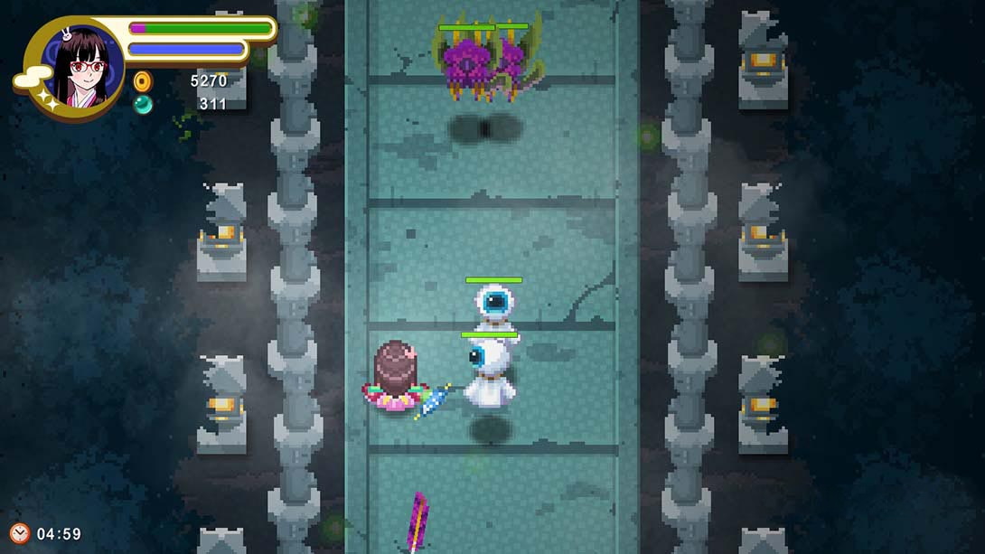 可以追溯到平安时代的怀旧圆点样式。您可以使用狼人和kaguya来战略性地征服舞台类似于街机游戏的高压垂直滚动动作游戏。