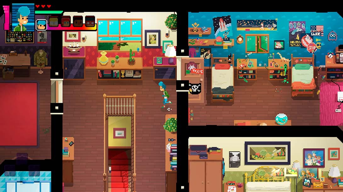 switch《交错之魂 crossing souls》是一款包含角色扮演游戏要素的像素风动作冒险游戏,故事背景设置于加利福尼亚州。玩家可控制五个角色:克里斯、马特、夏琳、乔大壮和凯文。每个角色都身怀绝技,战斗风格也各不相同。玩家可以参与实时战斗,解决丰富的谜题,打败强大的Boss,并畅玩受20世纪80年代街机游戏启发的特别关卡。随着游戏进程不断推进,玩家还可以解锁各种新道具和新能力,并且将其运用到这场拯救世界的冒险之中。战斗与谜题的难度还将逐渐提升,玩家最好精心规划自己的游玩战略。