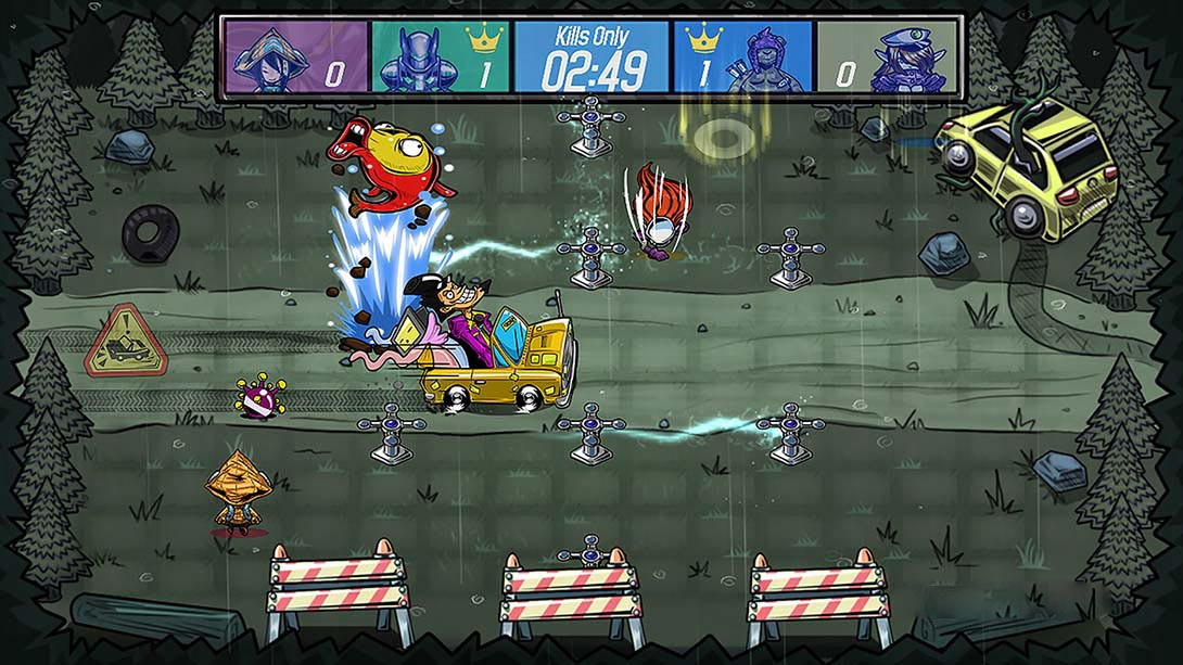switch《给我过来 Get Over Here》一款快节奏的擂台战斗动作游戏,拥有12个可选角色,每个的角色的造型都是非常独特,各种也拥有不同的战斗技巧,玩家将在擂台上打败所有敌人并取得胜利。