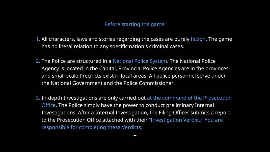 switch《法律地牢 Legal Dungeon》是一款扮演警方撰写调查卷宗的游戏。玩家将阅读涉及盗窃,谋杀等八桩案件的调查卷宗,并根据法律条款以及判例来撰写最终调查意见。