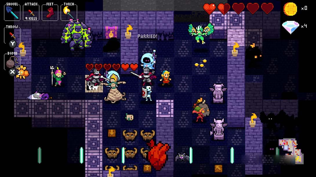 玩家必须按节拍移动以在随机生成的地牢中导航,同时与跳舞的骷髅、僵尸、龙等战斗,同时聆听游戏屡获殊荣的 Danny Baranowsky 配乐!您甚至可以在本地合作模式中与朋友组队!