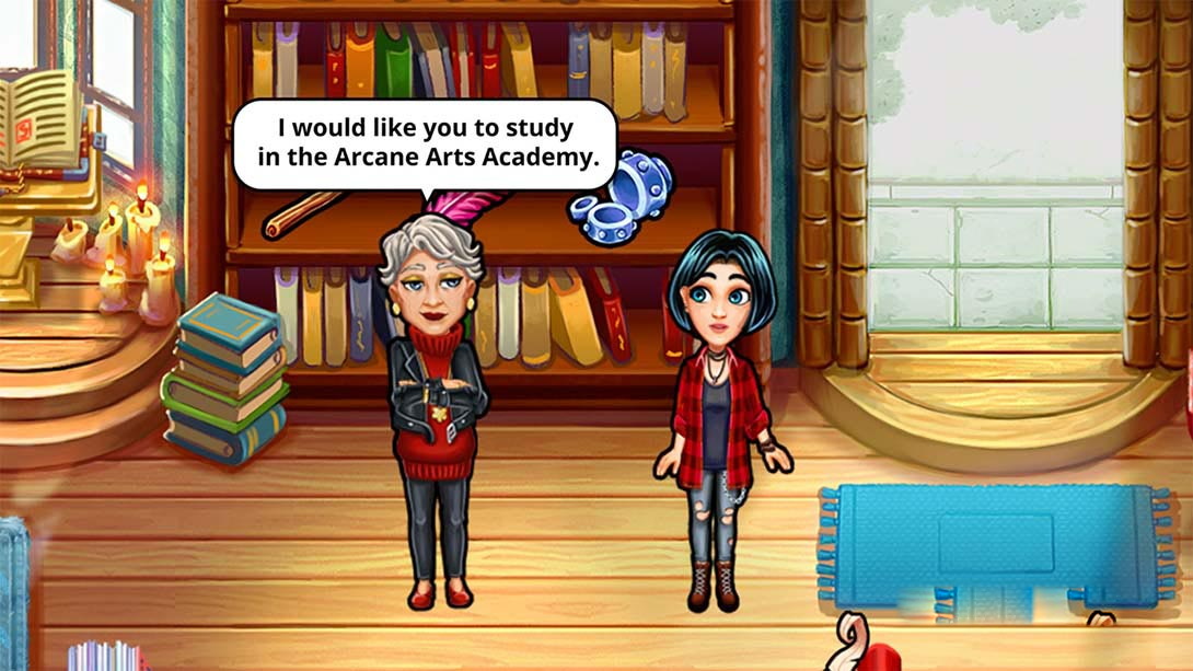 在奥术艺术学院,你的任务是帮助艾丽卡学习各种魔法课程。抓住物品并将成分组合成美妙的新创作和法术。但请注意——每个人的耐心都是有限的,包括老师和学生!