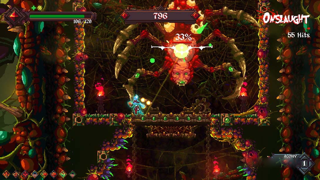 当您从火热的地狱的深处挣扎时,重金属的即兴演奏和像素化的疯狂将陪伴着您,面对臭虫缠身的Beelzebub的巢穴,以及其他潜伏着不同生物,boss和生活陷阱的地狱坑。串连击,跳跃动作和人才培养将是帮助您在这款肾上腺素泵送垂直平台游戏中摆脱困境的关键。