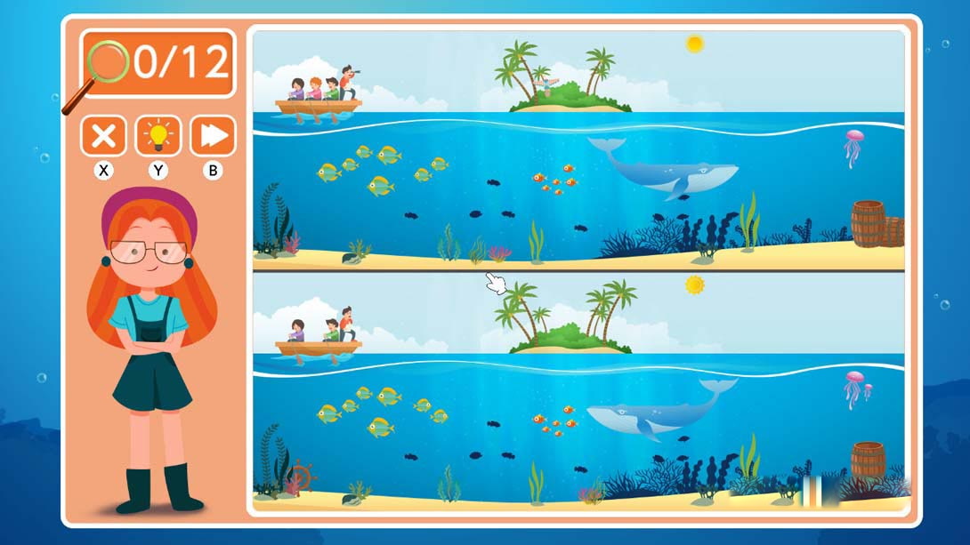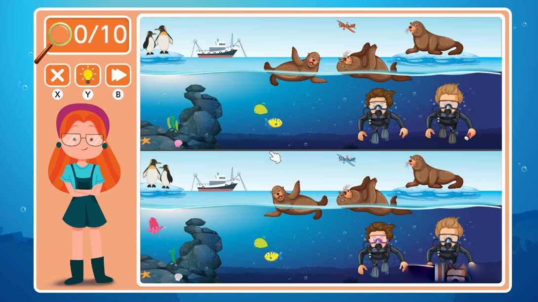 你知道谁住在海底吗?为了找到答案,薇姬一直梦想着戴着水肺游泳,探索海底深处。她绝对是你见过的最专一的人,但即使是这样坚定的探险家也需要帮助和友好的建议。加入Viki在一个迷人的水下冒险,并帮助她处理许多令人印象深刻的,彩色的图片,其中你将需要找到所有可能的差异!在海底深处有咧着嘴笑的海豹,藏着各种宝藏的箱子,各种形状和颜色的鱼,你可以想象,生动的珊瑚虫和更多的,等待你去发现他们!