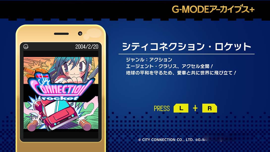 以前用feature phone被发表的本作品「城市连接·火箭」,是作为jareo的代表作品之一的「城市连接」系列的正统的续编作品。 被联合国派遣来的代理Claris搭乘新型的Clarics,前往被暴走的秘密结社“Spirits”夺走的超机密文件的回收任务。 使用系列惯例的“油罐”和可以用身体撞击道路的“超级火箭”,巧妙地将敌人的角色卖掉,同时找到舞台上隐藏的超机密文件。 坦克、战斗直升机等巨大BOSS、配音迷们喜欢的隐藏角色也有很多登场。 清除舞台时显示的可爱克拉里斯的身姿也值得关注! ■G-MODE档案是指 所谓“G-MODE档案”,是将以前的feature phone app游戏忠实再现并呈现给大家的复刻项目。 另外,“G-MODE存档+”是一个品牌,可以提供非传统模式的厂商开发、发布的有源手机应用游戏。 ・为了能让您直接享受当时的应用程序,我们将WEB连接菜单、各种按钮、按键内容等进行了移植再现,但也有一部分不起作用。 ・关于Nintendo Switch版的详细操作方法,请按+-按钮,在PAUSE菜单中浏览“玩法”。 ■城市连接火箭 2004年配信的配音作品 当时的配信网站“jaregareso” ■所谓的封面 这是游戏制造商jareko于2000年代推出的手机应用游戏品牌。 燃烧吧!好萌!主题,令人怀念的名作的新方法整理,到能细细品味的原创标题,可以享受到广泛种类的游戏。