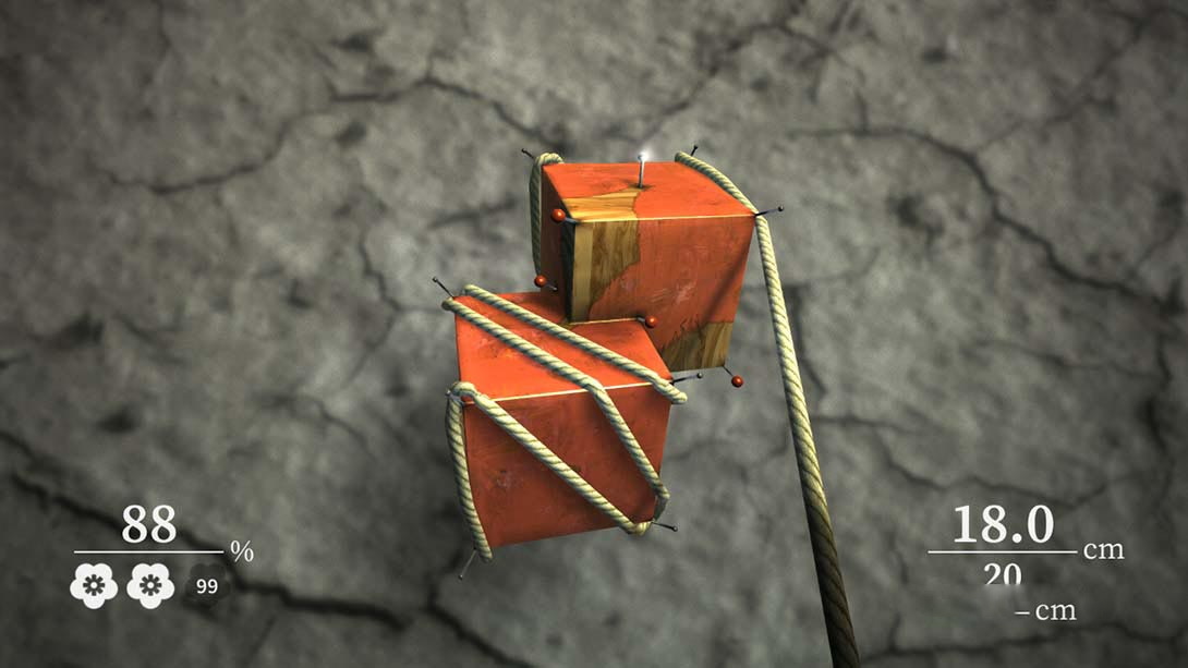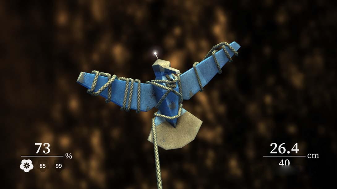 游戏的目标是用绳子把木雕缠绕起来,给它们上色。你可以像旋转屏幕上的雕塑一样旋转手中的Joy-Con来完成这一任务——一个简单的任务却有着惊人的复杂性。