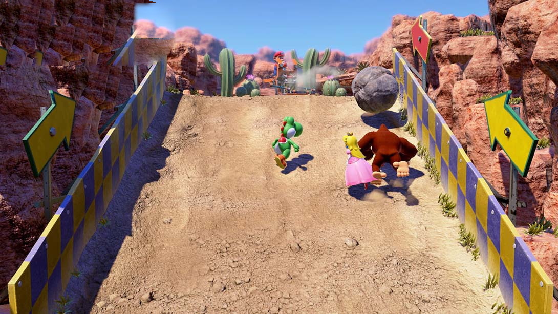 通过同系统**、本地无线**或在线*播放,随时随地举办派对。在全线比赛收集星星时,使用贴纸来赞美或纠缠其他玩家。所有模式都支持在线多人游戏,因此您可以与朋友一起玩一些小游戏或马拉松 30 回合比赛。来自世界各地的胜利同样甜蜜(偷星星也同样令人满意)。