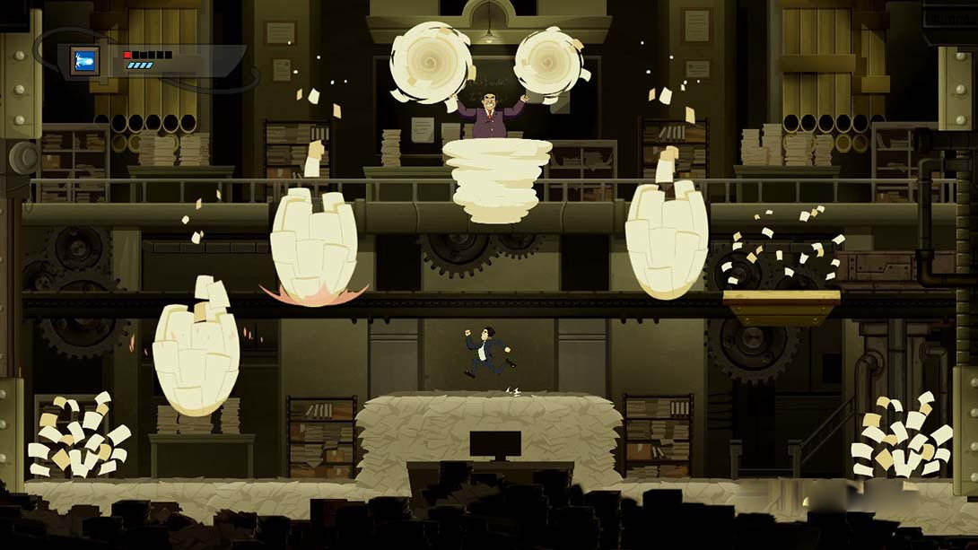 人 当你跳跃并冲过充满陷阱、古怪的同事和强硬的老板的七个公司部门时,考验你的平台技能。