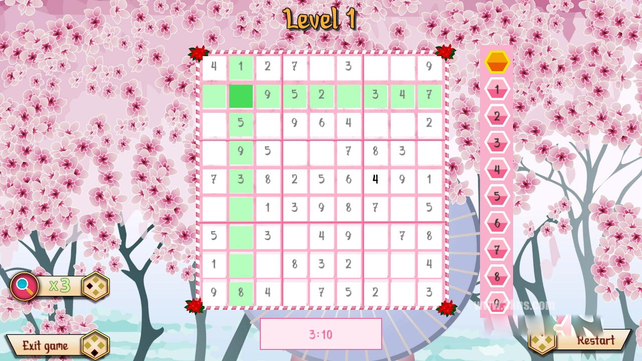 在你解谜的时候需要一点帮助吗?所有关卡都有提示按钮,它会在随机位置给出一个数字,还有一个重置按钮,它会再次清空棋盘。