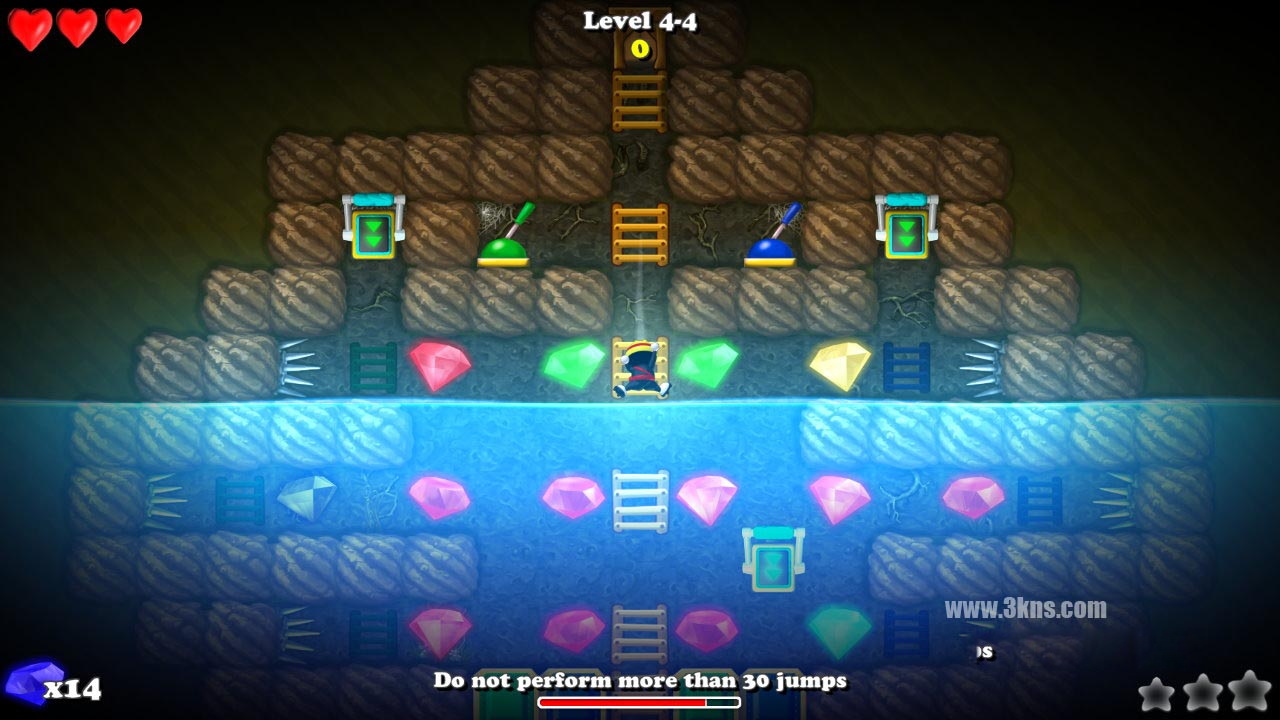 从一面墙跳到另一面墙,从地板跳到天花板,你的忍者技能将在一个越来越复杂的地下迷宫中接受考验,迷宫中充满了甜美的珠宝(和星星)。
