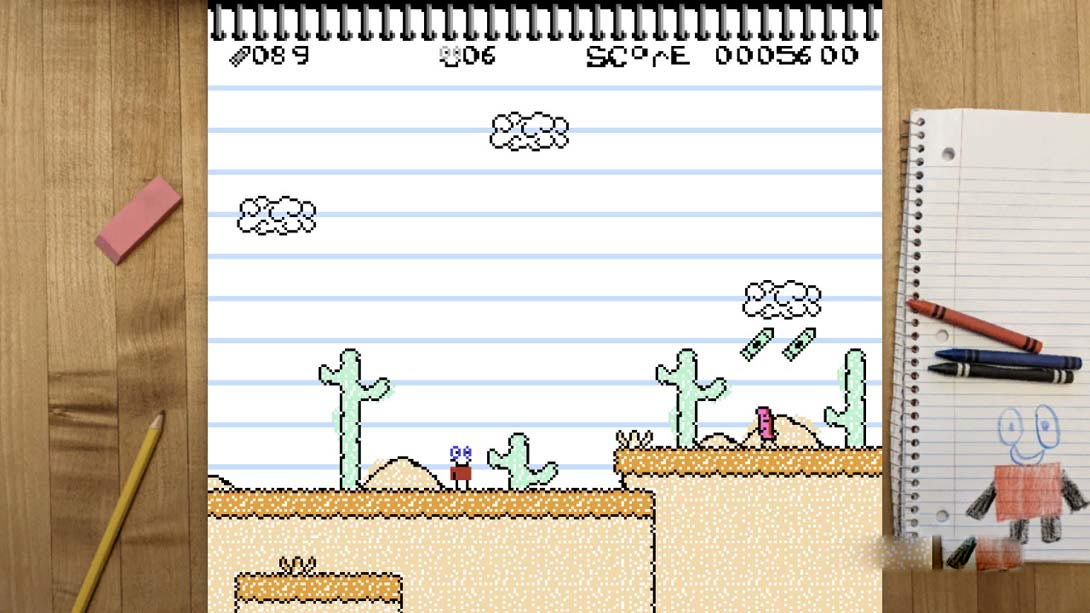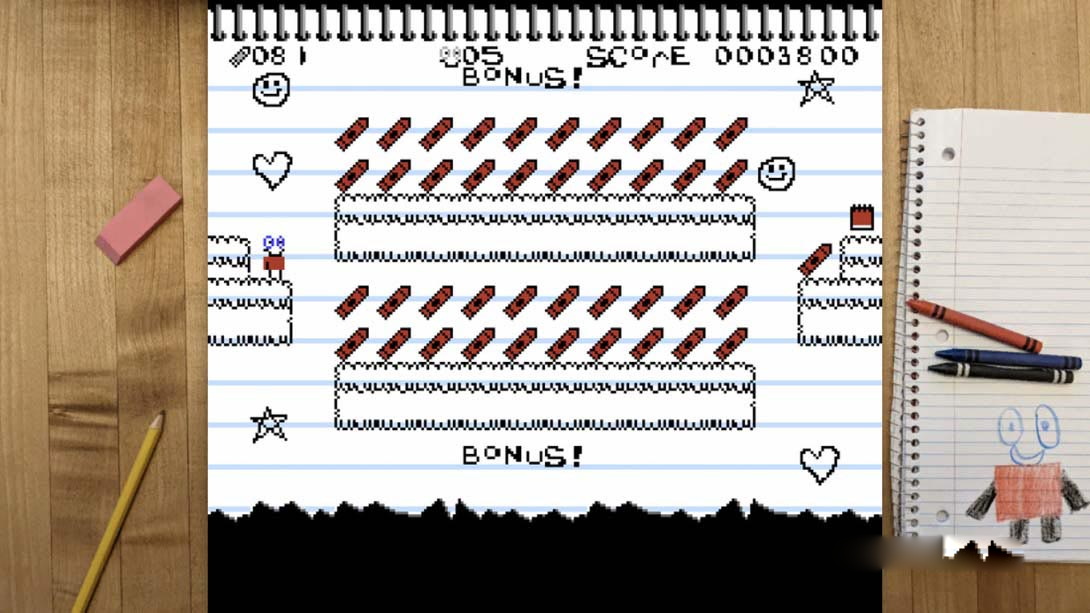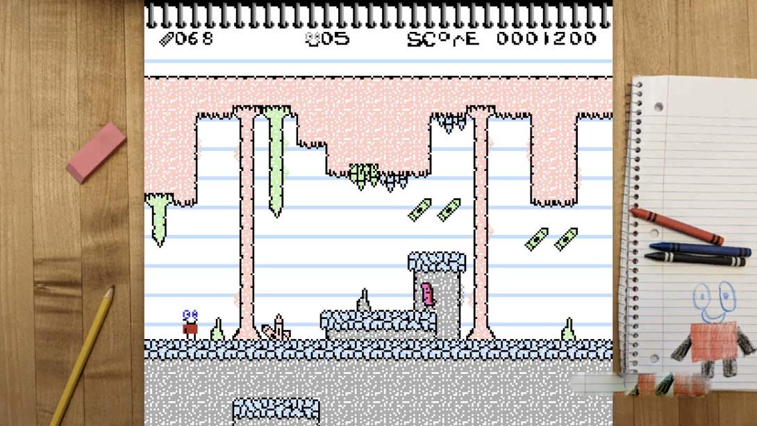 一个孩子的涂鸦已经带来了生活在这个高度程式化的8位游戏!考虑到8位硬件的局限性,我们创造了一款具有笔记本纸上手绘世界外观的完整游戏。