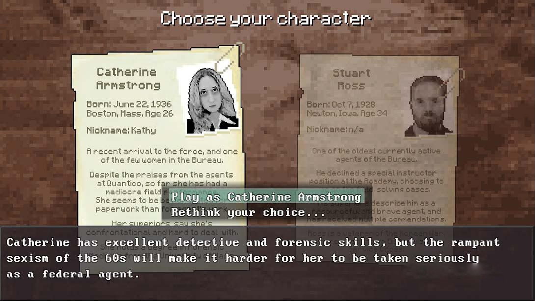 选择扮演联邦探员凯瑟琳·阿姆斯特朗(Catherine Armstrong),一位具有出色科学技能的年轻新兵,或者扮演斯图尔特·罗斯(Stuart Ross),一位街头聪明的老手。他们独特的技能和个性将改变故事的展开方式。