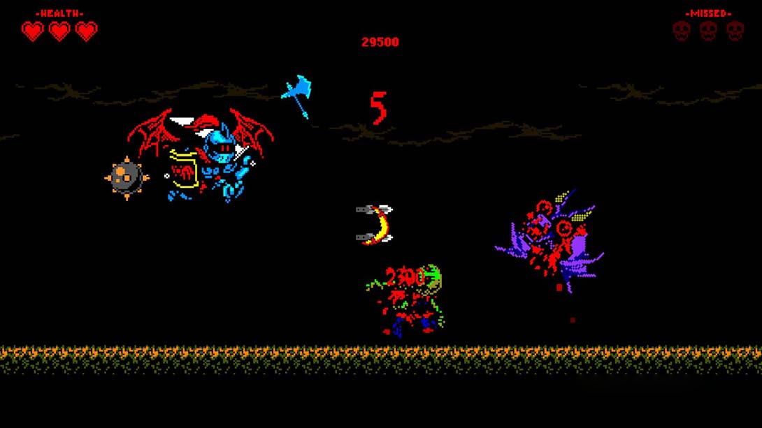 见证一套神秘的盔甲的可怕冒险,只被称为"骑士"。骑士手持一把大剑,配有血红的翅膀,允许飞行,拼命地跑遍乡村,从不停下来寻求任何喘息或考虑。他必须面对和战胜嗜血的鬼怪,燃烧的头骨和无法形容的恐怖,同时跳过尖峰坑,飞过小缝隙的永无止境的冲击。如果他需要三次命中或允许三个敌人通过, 这是 "游戏结束"!