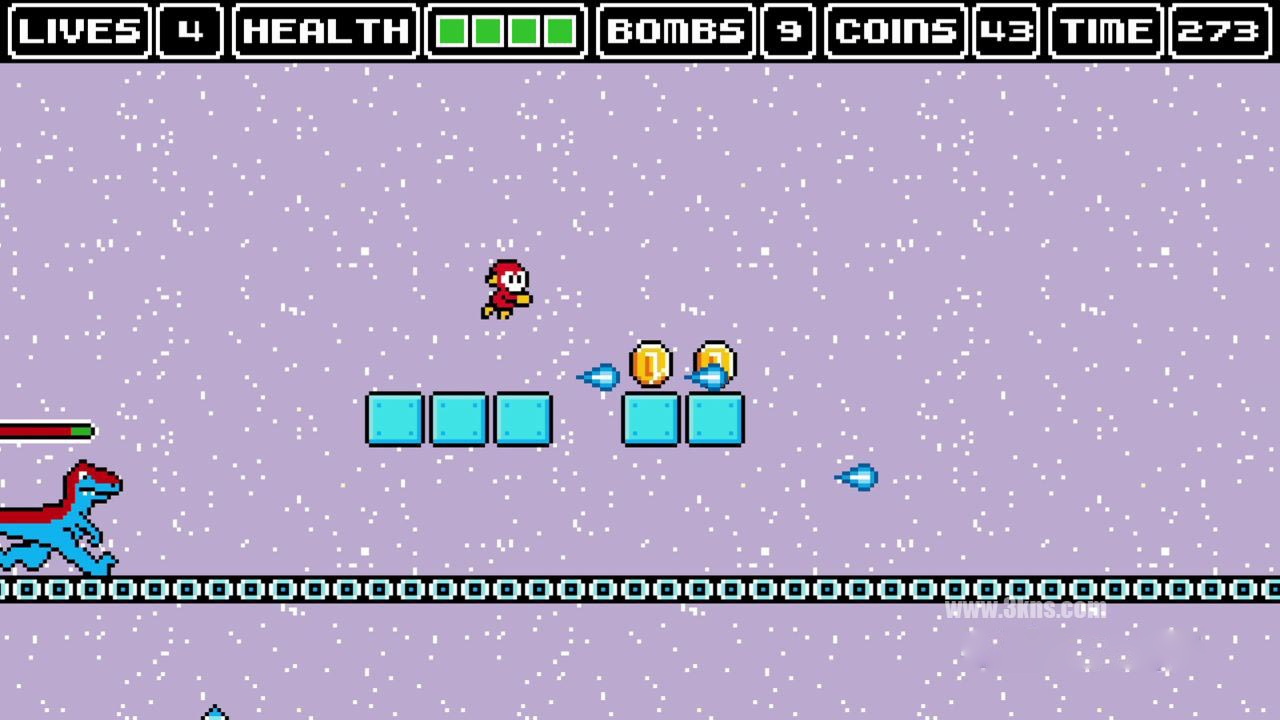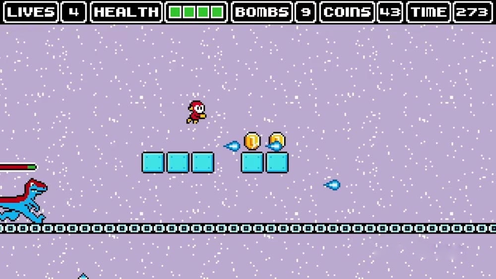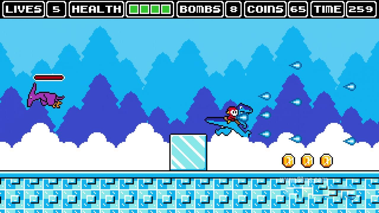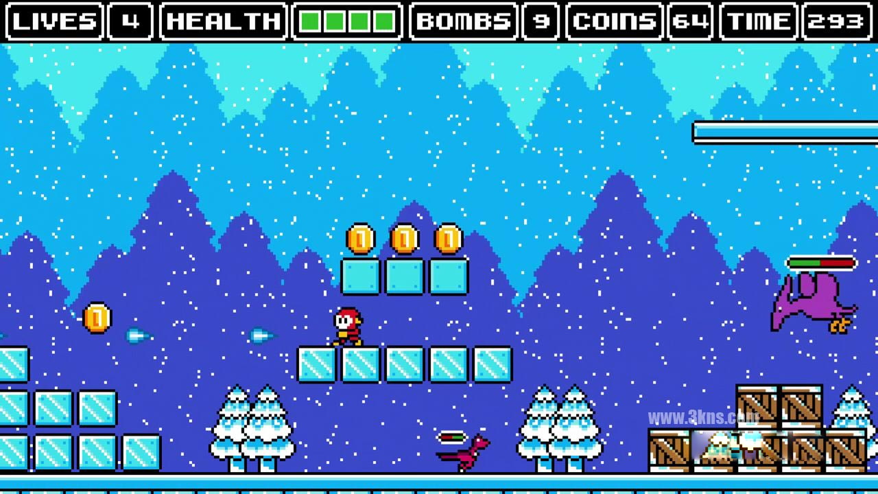 与 B3RN1 一起加入这款复古 8 位平台冒险之旅,穿越热带海滩、雪山、黑暗洞穴和茂密森林。寻找失踪的银河爆破游侠小队,骑乘恐龙,发现秘密密码,发现隐藏路径,寻找收藏品,最后在城堡中与霸王龙对决!