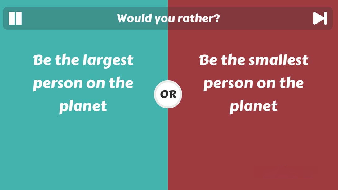 选择冲突:你更喜欢什么?潜入一个有300个令人费解的两难选择的世界。你的道路,你的命运——明智地选择吧!