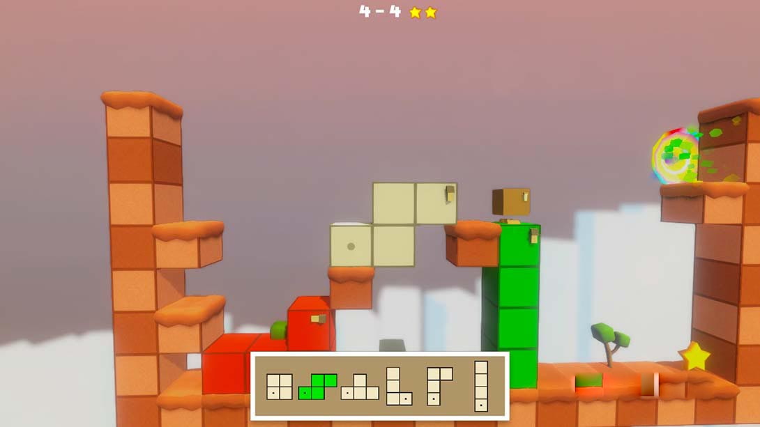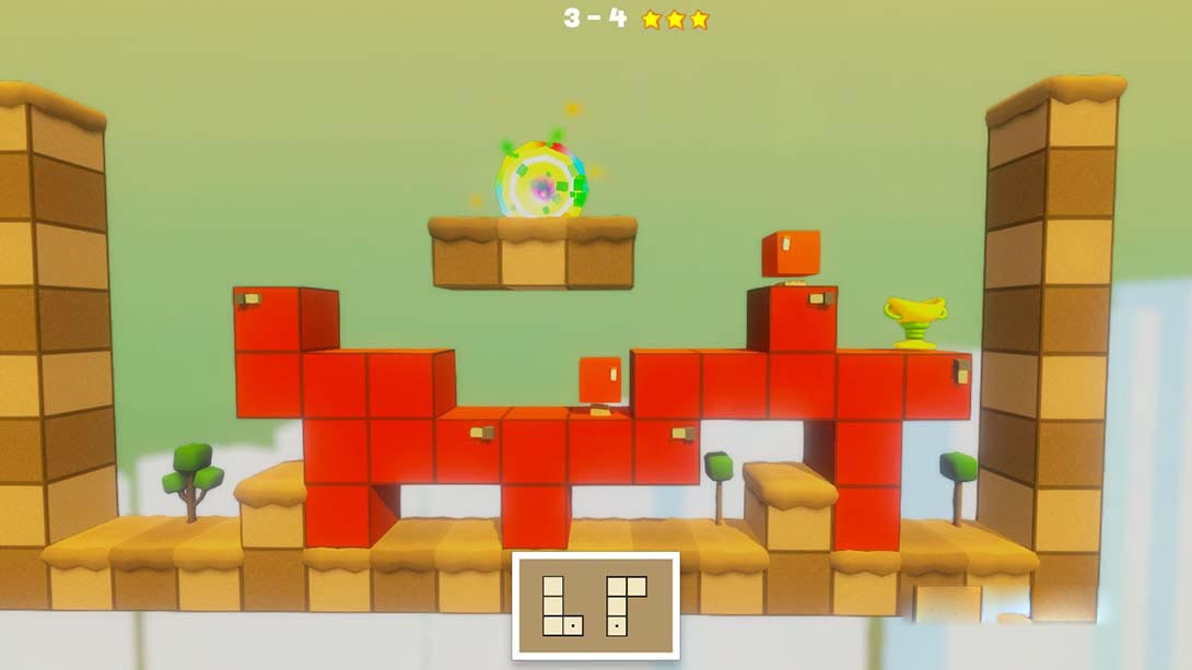 通过变形的方法,Tetras 可以变成不同的 Tetrominos,用于填充孔和主谜题,试图到达水平另一侧的门户。