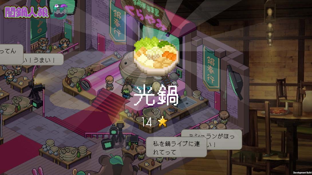 黑暗锅人狼是大家一起煮锅的隐藏真面目的游戏。朋友们商量着在迷宫里收集食材,做出美味的火锅。但是,叛徒可能会混入其中,妨碍煮锅……。一边隐藏彼此的真实身份一边制作理想的火锅吧!